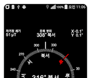 나침반 어플은 단순한 방향 표시를 넘어 다양한 센서 정보를 함께 제공합니다. 대표적으로 센서 정확도 표시 기능이 포함되어 있어 현재 기기의 상태를 확인할 수 있으며, 이를 통해 보다 안정적인 방향 측정이 가능합니다.